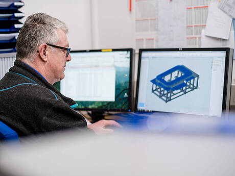 Unsere hauseigene Konstruktionsabteilung entwickelt Ihre Maschine direkt bei uns im Haus. Sie profitieren von zahlreichen Vorteilen, da wir alle Arbeiten unternehmensintern erledigen: